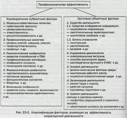При изучении операторской деятельности особое внимание уделяется выявлению и классификации факторов, влияющих на ее эффективность. Одна из возможных классификаций приведена на рис. 23-3.