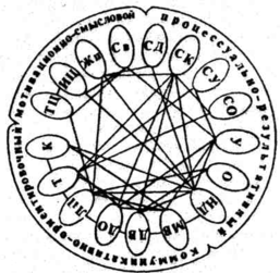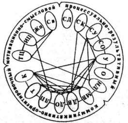 Рис.3. Графическое изображение связей между компонентами мотивационно-смыслового, процессуально-результативного и коммуникативно-ориентировочного аспектов ЦО мальчиков-подростков