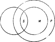 На этой схеме достаточно наглядно видно, почему субъект вывода - меньший термин, а предикат вывода - больший. Таким образом, по-другому, структуру простого категорического силлогизма составляют три и только три термина: меньший, средний и больший.