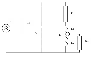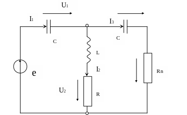 Данную схему заменяем на эквивалентную в которой параллельно включенное сопротивление Rn заменяется сопротивлением Rэ включенное последовательно: