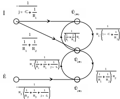 Для полученной схемы составляем уравнения определяющее значение тока İ1.