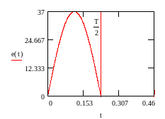 Рассчитать переходный процесс в электрической цепи при включении в нее источника напряжения e(t) амплитуда которого равна E = 37 и временной параметр Т = 0,46 мс, сопротивление цепи R = 0.9 кОм, постоянная времени τ = 0.69.