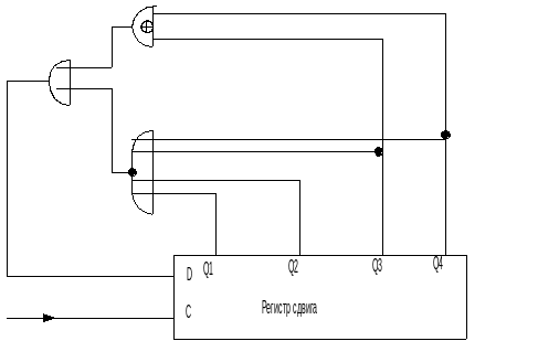 Рисунок 4.3 Генератор псевдослучайных последовательностей с n=4 бит.