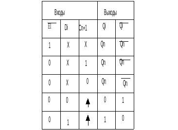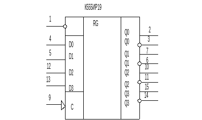 Для реализации 4-разрядного регистра возьмем микросхему К555ИР19, которая представляет собой четырехразрядный параллельный регистр с D –триггерами и буферными входами для разрешения записи данных EI. Условное обозначение регистра приведено на рисунке 4.5.