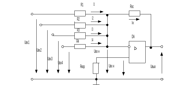 Uвых=-(Uвх1+Uвх2+Uвх3+Uвх4)Roc/R,