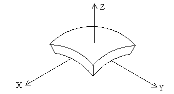 Направление его поляризации совпадает с осью z; оси x и y расположены в касательной плоскости (Рис.2). Вследствие эквипотенциальных сферических поверхностей E1=E2=0; D1=D2=0. Из-за отсутствия нагрузки упругие напряжения T3 равны нулю, а в силу механической однородности равны нулю и все сдвиговые напряжения. В силу симметрии следует равенство напряжений T1=T2=Tc, радиальных смещений 1=2С и значения модуля гибкости, равное SC=0,5(S11+S12). Заменив поверхность элемента квадратом (ввиду его малости) со стороной l, запишем относительное изменение площади квадрата при деформации его сторон на l: