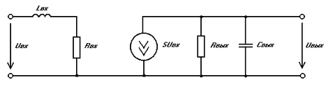 , то из эквивалентной схемы можно исключить входную ёмкость, так как она не влияет на характер входного сопротивления транзистора. Индуктивность же выводов транзистора напротив оказывает существенное влияние и потому должна быть включена в модель. Эквивалентная высокочастотная модель представлена на рисунке 3.3. Описание такой модели можно найти в [2].