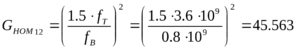, которое находится по аналогичным формулам, и, взяв коэффициент усиления по мощности:
