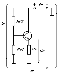 Принцип действия эмиттерной термостабилизации представлен на рисунке 3.6. Метод расчёта и анализа эмиттерной термостабилизации подробно описан в [3].