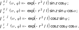 , затем оно в соответствии с (9.49) домножается на (9.55) и интегрируется. При этом необходимо помнить, что базисные функции предполагались нормированными. Поэтому функцию (9.55) необходимо предварительно пронормировать. В силу осевой симметрии системы поверхностный интеграл (9.49) можно представить в координатах вращения. Интеграл по