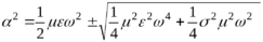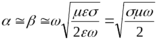 Для определения степени затухания и фазовой скорости нужно вычислить и . Из уравнений (2.3) получаем