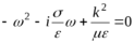 волновое число k комплексно. Обозначим k=+i, где — фазовая константа, — коэффициент затухания. Тогда