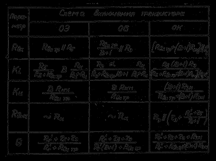 2. Используя формулы таблицы, оценить те же параметры усилителя и вычислить относительное расхождение между экспериментальными и аналитическими результатами.