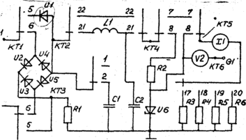 - выпрямитель, который в зависимости от положения переключателя BI может работать по однополупериодной или мостовой схеме;
