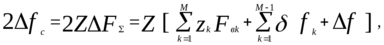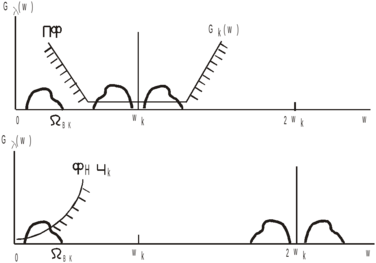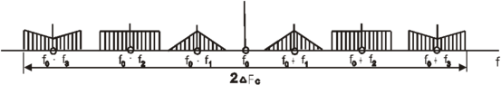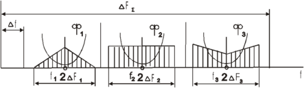 где zkFвk=2ΔFk – полоса частот, занимаемая k-ым канальным сигналом; zk – коэффициент, определяемый способом модуляции поднесущей сообщением λk, спектр которого имеет полосу Fвk; Z – коэффициент, определяемый способом модуляции поднесущей групповым сигналом; δƒk – защитный интервал между соседними спектрами; Δƒ – нижняя граничная частота спектра многоканального сообщения.