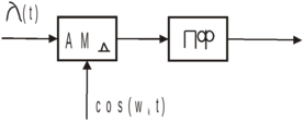 Рассмотрим особенности построения систем с ЧРК при некоторых способах формирования канальных сигналов. Наиболее простым способом является АМ. Для этого используется амплитудный модулятор (АМд), полосовой фильтр (ПФ). На приемной стороне выделение сообщения производится синхронным детектором или обычным линейным детектором (Д). Особенности спектров сигналов на разных этапах формирования показаны на рис. 2.1.4. Асимметрия амплитудно-частотной характеристики фильтра приводит к искажениям огибающей АМ сигнала и, следовательно, к искажениям выделяемых сообщений. Снизить искажения можно путем уменьшения коэффициента модуляции. При этом снижается уровень квадратурных составляющих модулированного сигнала на входе детектора (Дk), приводящих к искажениям сигнала. Однако уменьшение коэффициента модуляции сопровождается уменьшением мощности боковых составляющих за счет увеличения мощности несущей. Недостатком АМ является большая полоса частот, занимаемая каналом (в 2 раза больше максимальной частоты сообщения). Несмотря на этот недостаток, а также относительно низкую помехоустойчивость, АМ находит применение вследствие простоты аппаратуры.