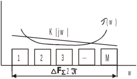 Рассмотрим основные виды искажений в групповом тракте системы с ЧРК. Групповой тракт должен обеспечивать неискаженную передачу группового сигнала. Это достигается линейностью амплитудной характеристики, а также постоянством амплитудно-частотной и линейностью фазовой характеристик. Амплитудная характеристика определяет нелинейные искажения группового сигнала, а амплитудно-частотная и фазовая – линейные искажения. Линейные искажения группового тракта отсутствуют, если модуль комплексного коэффициента передачи тракта |K(jω)|=const в полосе группового сигнала, а зависимость фазовых сдвигов от частоты φ(ω) = τω – линейная функция частоты. Здесь τ=∂φ(ω)/∂ω – групповое время запаздывания (величина постоянная). Отклонение указанных характеристик от идеальных приводит к деформации спектра группового сигнала (рис. 2.1.8). Однако условие ортогональности канальных сигналов при этом сохраняется. Неравномерность коэффициента передачи тракта и группового запаздывания приводит к изменениям амплитудных и фазовых соотношений в спектрах канальных сигналов. При условии ΔF∑ >>ΔFk эти искажения становятся незначительными.