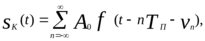где А0 – амплитуда импульсов; ƒ(t) – функция, описывающая форму одиночного импульса с единичной амплитудой и длительностью τи; Тп – период повторения импульсов; Vn – параметр, характеризующий начальный сдвиг последовательности.