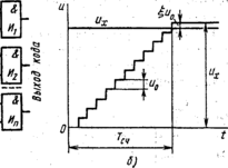 На рис. 13.14,6 показано, как от каждого импульса, поступающего с ГИ, увеличивается преобразованное в ЦАП (этот преобразователь будет рассмотрен позже) напряжение: