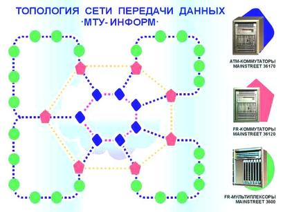 Реализованная таким образом сеть передачи цифровой информации имеет универсальную архитектуру, способную работать в режимах "прозрачный канал" для передачи как пакетов, так и ячеек. Это позволяет оптимизировать сеть, сохраняя экономию пропускной способности при низкоскоростном доступе извне и обеспечивает быстрый обмен информацией, при котором экономия ресурсов не является первостепенным требованием. Для пользователей же сеть оказывается "прозрачной" и с них снимаются проблемы по поиску и приобретению какого-либо дополнительного оборудования, а также по стыковке их сетей. Компания "МТУ-Информ" полностью берет на себя всю организацию прямого доступа к пользователям и контролирует работоспособность канала вплоть до розетки абонента. Первая очередь сети рассчитана на 10000-17000 абонентов (нижняя граница достигается при неравномерном распределении абонентов по узлам).