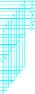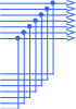 Структурно схему запоминающего устройства коммутации можно представить в виде восьми ОЗУ емкостью 256 бит каждая, выходы которых объединены общей параллельной шиной, а на входы каждого из ОЗУ поступают соответствующие групповые каналы и выделенные тактовые импульсы. Такая схема представлена на рисунке 4.9.