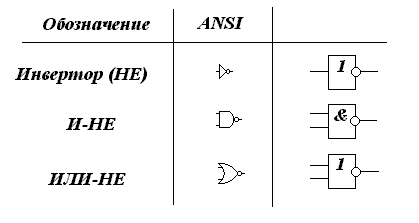Любое цифровое устройство предназначено для выполнения той или иной логической функции, следовательно, такое устройство можно представить в виде элементарных ячеек, таких как НЕ, И-НЕ, ИЛИ-НЕ. Рассмотрим их схемы и принцип работы.