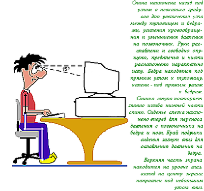 Рис. 4.2 Правильное положение тела оператора компьютера обеспечивающее безопасную работу.