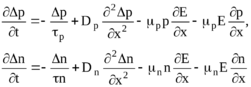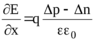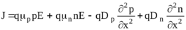 Для одномерного случая разделяя члены, относящиеся к электронам и дыркам , учитывая, что полный ток равен: