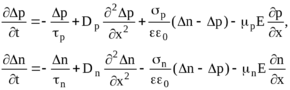 Считая, что в образце выполняется условие электронейтральности: Δp≈Δn и τp ≈ τn. суммируя уравнения для электронов и дырок получим: