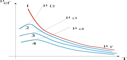 Рис. 1.21. Диаграмма, поясняющая температурную зависимость подвижности μef, при рассеянии на решетке μr и ионизированной примеси μiK.