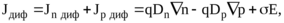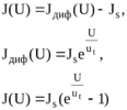 где ut = kT/q, иногда эту величину называют тепловым потенциалом, поскольку kT – соответствует максимуму кинетической энергии электронов при температуре T. При T = 300К ut ~ 26 мВ. Значение предэкспоненциального множителя в выражении для Jдиф принято равным Js, чтобы обеспечить при отсутствии напряжения на pn переходе равенство нулю общего тока.