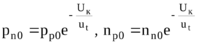 Поскольку концентрация основных носителей примерно равна концентрации легирующей примеси (pp0 = Na, nn0 = Nd), и произведение равновесных концентраций электронов и дырок в одной области при заданной температуре равно квадрату концентрации собственных носителей заряда nn0pn0=pp0np0=ni2 (11/19) , то из (2.3) получим: