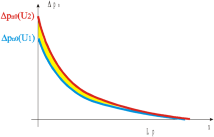Тогда, учитывая, что для инжектированных в p область электронов можно записать аналогичное соотношение, получим: