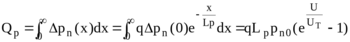 Для построения модели процесса и соответственно расчета заряда дырок инжектированных в n-область воспользуемся формулой для распределения носителей заряда в длинной n-области (рис. 2.17) и стандартными граничными условиями, устанавливающими связь между граничной концентрацией инжектированных носителей и приложенным к переходу напряжением: Δpn(0) = pn0[exp(U/UT) - 1]. Тогда для инжектированного заряда можно записать: