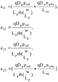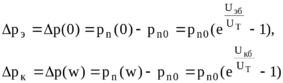 Откуда, положив x = 0 найдем дырочную составляющую тока эмиттера, и, положив x = w дырочную составляющую тока коллектора.