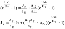 Преобразуем уравнение, описывающее коллекторные характеристики к другому, более удобному виду. Для этого из верхнего уравнения (4_87) выразим (eUэб/Uт-1) и затем подставив полученное значение в нижнее.