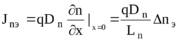 Зная распределение электронов можно рассчитать электронную составляющую инжекционного тока, при x = 0 этот ток будет диффузионным: