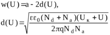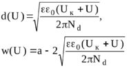 При некотором напряжении U0 канал перекроется, т.е. будет выполняться условие: w(Uо) = a - 2d(Uо) = 0 . Откуда: