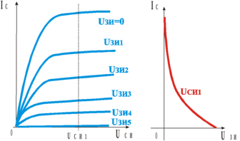 Рис. 77. Вольтамперные характеристики полевого транзистора с управляющим pn переходом