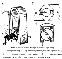 Узел для создания вращающего момента состоит из сильного постоянного магнита и легкой подвижной катушки, по которой протекает измеряемый ток (Рис.5, а).