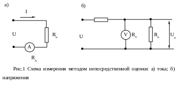 Для измерения тока и напряжения применяют метод непосредственной оценки и метод сравнения.