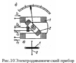 зел для создания вращающего момента состоит из неподвижной катушки, внутри которой помещена подвижная. Принцип действия заключается во взаимодействии магнитных полей неподвижной и подвижной катушек, по которым протекают измеряемые токи (рис.10).