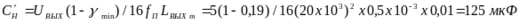 . Выбираем конденсатор типа К50-35 на номинальную ёмкость 220 мкФ и номинальное напряжение 25 В. Сн = 220 мкФ.