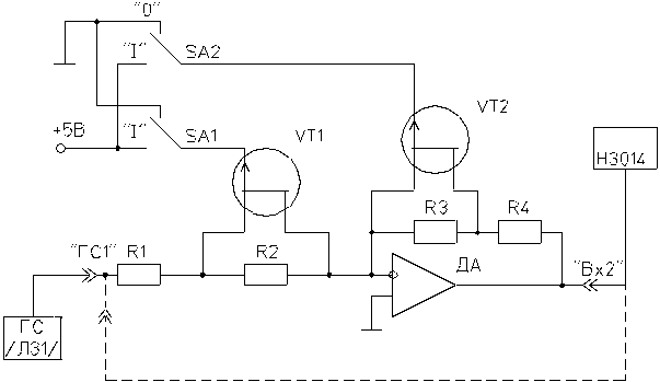 4.2.1. Установить, задавая цифровой код кнопками SA1 и SA2, значение коэффициента усиления усилителя приблизительно из середины диапазона его изменения.