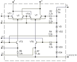 В качестве детектора АМ сигнала предпочтительно использовать последовательную схему диодного детектора, но так как элементная база промышленности всё больше и больше выпускается во много функциональных микросхемах, то можно использовать в качестве детектора микросхему. Детектор однополосного сигнала можно выполнить с использованием аналогового перемножителя на микросхеме К174ПС1 на один вход которого подается детектируемый сигнал, а на второй - опорное колебание частоты несущей от специального генератора. В схеме опорного генератора рекомендуется использовать кварцевый резонатор. Выполнить генератор можно либо на отдельном транзисторе, либо на микросхеме К174ПС1. Напряжение сигнала на входе такого детектора должно составлять UВХ Д = 10...20 мВ.