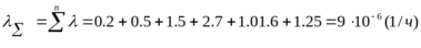 Проведем расчет интенсивности отказов с учетом того, что Кн и коэффиециент, характеризующий условия применения, входящее в интенсивность отказов элементов.
