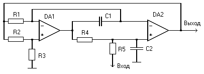 Ðàññìàòðèâàåìîå ñõåìîòåõíè÷åñêîå ïîñòðîåíèå ôèëüòðà ïîçâîëÿåò ïîëó÷èòü îïòèìàëüíûå ïàðàìåòðû (íåîáõîäèìîå ïðîèçâåäåíèå óñèëåíèÿ íà ÷óâñòâèòåëüíîñòü, ìèíèìàëüíûé øóì è ìàêñèìàëüíûé äèíàìè÷åñêèé äèàïàçîí [3]), â òîì ñëó÷àå, åñëè åìêîñòü Ñ1=Ñ2=Ñ, à ñîïðîòèâëåíèÿ ðåçèñòîðîâ ðàâíû R0=1/(2··fð·Ñ). Ðåçèñòîð R5 îáåñïå÷èâàåò òðåáóåìóþ äîáðîòíîñòü. Åãî ñîïðîòèâëåíèå îïðåäåëÿåòñÿ âûðàæåíèåì [3]: