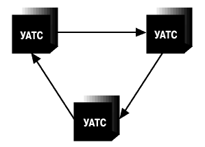 Каждый узел получает эталонный сигнал от своего независимого источника синхронизации (рис.5). Допустимая частота проскальзываний сохраняется благодаря жесткой точности синхронизации на обеих сторонах соединения. Стандарты определяют границу стабильности генераторов, используемых для синхронизации плезиохронных соединений. В сетях, использующих плезиохронные ситуации, управляющие генераторы должны поддерживать долговременную нестабильность частоты в пределах 1х10-11. Это типовой режим работы для соединения через административные границы.