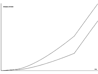 Графики зависимости изменения проходных сечений золотниковых пар от величины хода золотников приведены на рис. 2.11. Анализ формы кривых показывает, что она близка к параболической, т. е. с постоянной «чувствительностью», что подразумевает постоянную величину отношения прироста расхода к самой величине расхода в каждой точке графика при равном значении величины изменения управляющего сигнала. Например, если при изменении управляющего сигнала расход изменяется с 10 л/мин. до 12 л/мин., то при таком же изменении управляющего сигнала в диапазоне расхода, равном, например, 80 л/мин. он изменится до 96 л/мин. (Видно, что относительное изменение расхода постоянно и равно 20%). Такая характеристика зависимости и форма графика называются «прогрессивными».