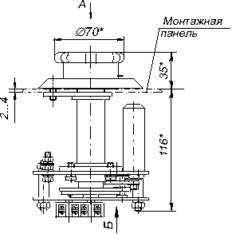 Под монтажной панелью скрыт сам механизм потенциометра и клеммник. Потенциометр заключен в цилиндр. Угловое положение маховичка передается к нему посредством зубчатых колес, закрепленных между двумя неподвижными пластинами. Эти пластины стянуты четырьмя болтами по периметру. К нижней пластине посредством винтового соединения прикреплен клеммник с расположенными на нем клеммами, к которым подводится питающее и снимается выходное напряжение.